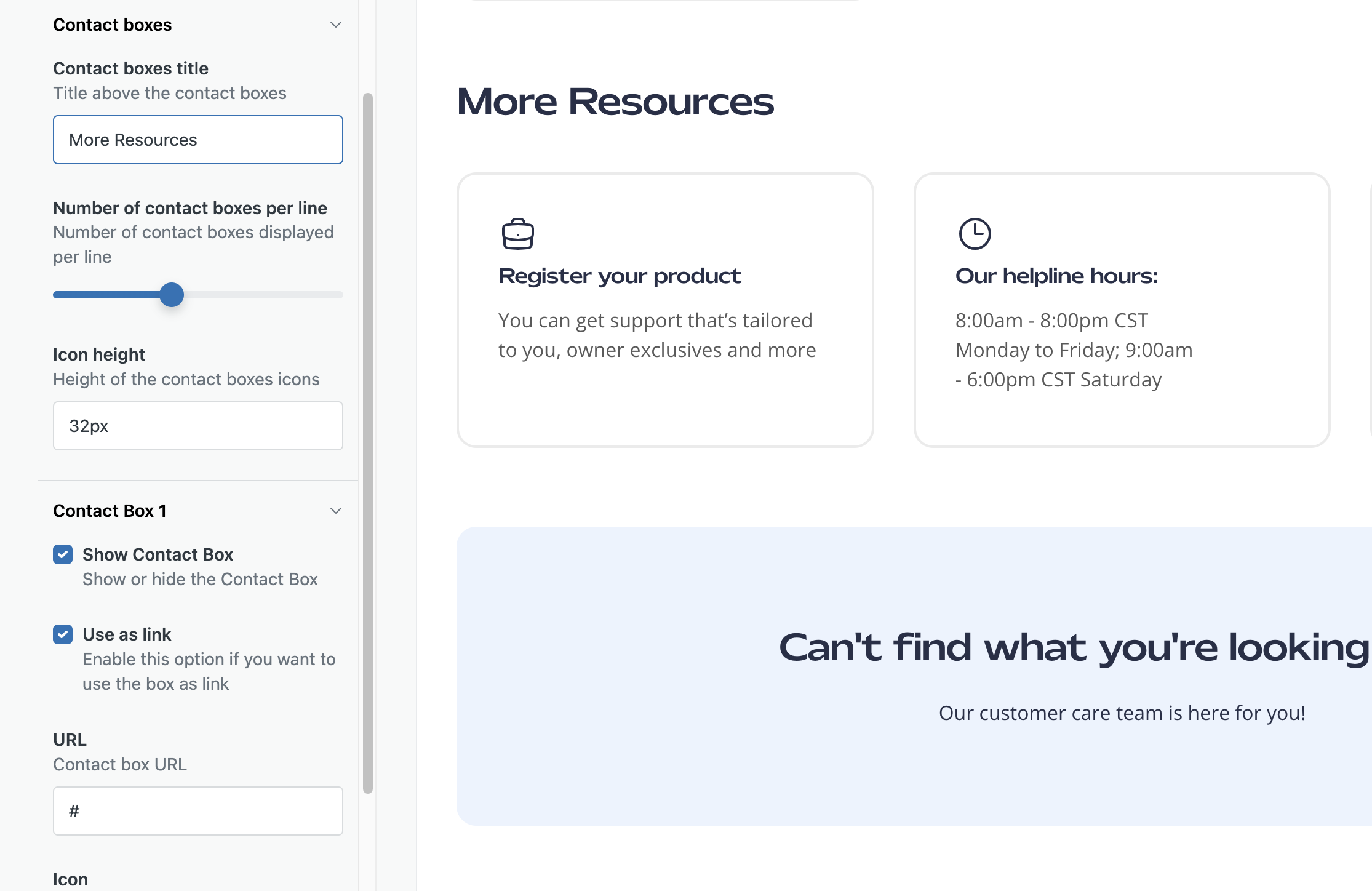 Our themes allow you to configure blocks on the Home page to display contact options or additional information. They can be used as links to any pages you want. It could be a page on your main website or a category/section/article of your Help Center.