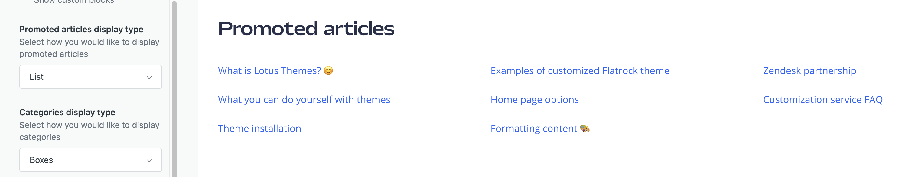 Our themes have a variety of different layout styles for displaying promoted articles on the homepage of your help center.